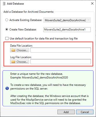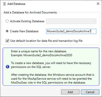 After providing a valid name, press ‘Add’ and the newly created database will be added to the list of Active Databases for Archived Documents.