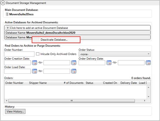 However, the contents of such databases will still be available for viewing through the Document Management Viewer as they were, previously. The databases can be re-activated by an administrator and the documents of such orders will be available for download again.