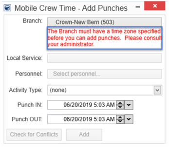 Adding a Mobile Crew Time Punch Activity through Local Dispatch