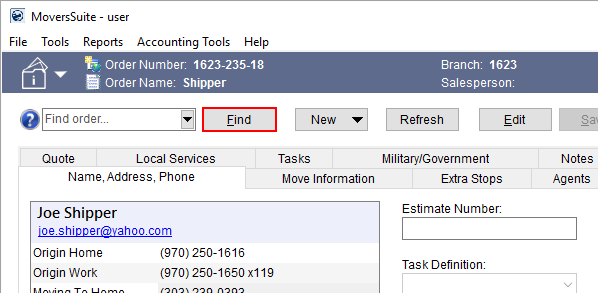 Advanced Finds are available in MoversSuite allowing you to