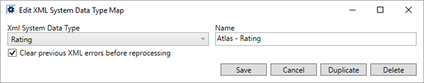 Create a mapping for Atlas - Rating linked to the Xml System Data Type Map of Rating. This defines the process to support an Atlas Revenue Import.