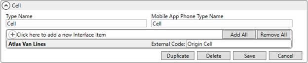 NOTE: Atlas allows for two phone number references per location. They can be the same type, i.e. two numbers set on the order mapping to the Origin Cell type.