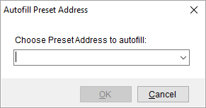 This dialog is available by pressing the Autofill Preset Address buttons found in the following locations: