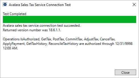 Avalara Sales Tax Service Connection Test