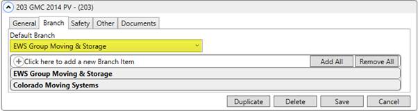 Figure 20: Branch tab within Equipment Setup