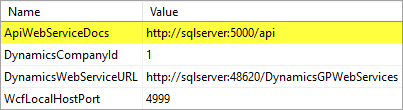Where [YOUR APPLICATION SERVER] is the server hosting MoversSuite and [PORT] is the available port number. This is also referred to as your External IP Address and Forwarding Port. You can view this information through the ApiWebServiceDocs setting within the GlobalSystemOption table. In the example below (Figure 22), the application server is sqlserver and the port is 50000.