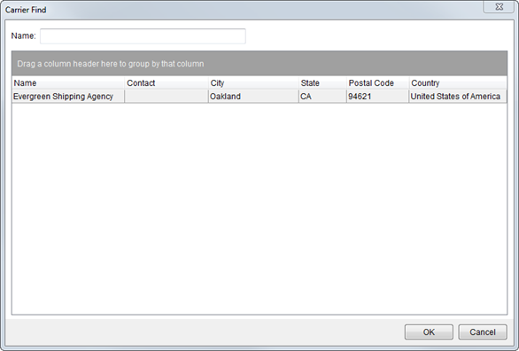 a carrier field by Name within the Shipping Information tab (available through
