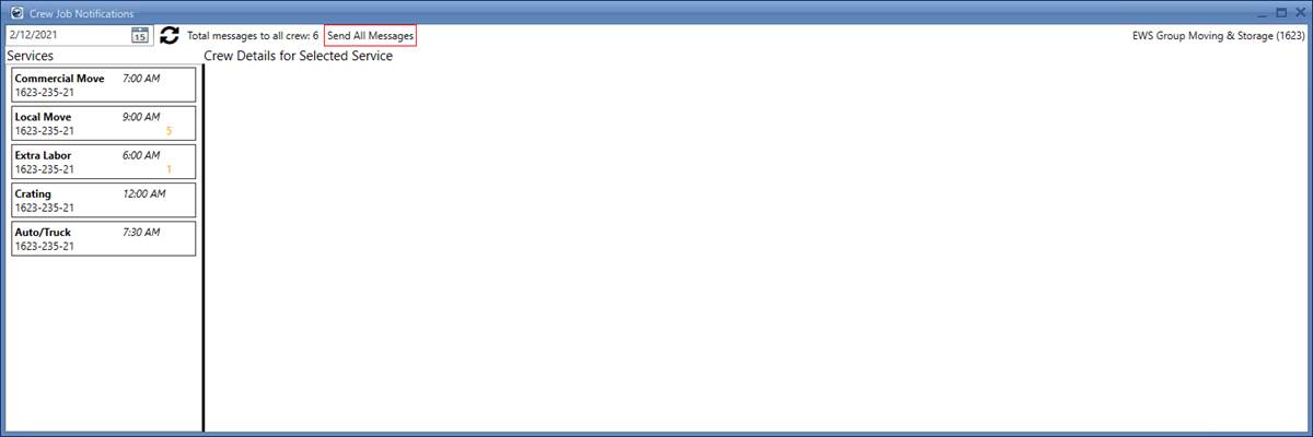 Use this button to simultaneously send messages to all crew members on all services displaying in the Crew Messaging Services column. |