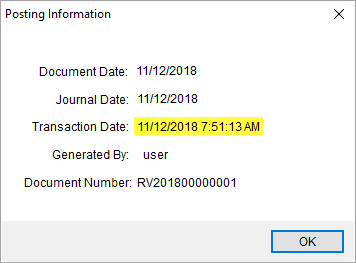 The date and timestamps referenced by MoversSuite for transactions, crew assignments, auditing, Notes, Document Management documents, etc. are based on the local time of the Microsoft SQL Server hosting the MoversSuite application. In the Posting Information example below, the date and time of the transaction are those associated to the SQL server.