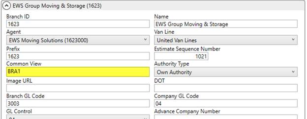 To establish a Dispatching Common View, set the Common View field to the same value for each branch you want on the same common view within Branch Setup. This value can be up to four characters in length.