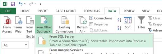 Select From Other Sources > From SQL Server.