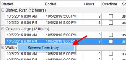 Figure 37: Remove Time Entry option