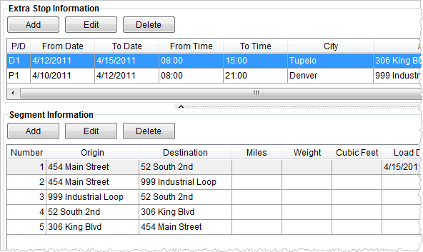 Segments define a sequential relationship between move locations. A segment can be set up that identifies the route a driver would take from an origin address to an extra stop and another to a final destination, or a segment can be defined that bypasses all extra stops, for example. Segments can be set up in any way that fits a moving company needs.