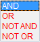 Users have a choice of conditional operators to base groupings on. The following options are available: AND Use this operator to select records when all conditions under the “AND” are met. For example, if two conditions exist below the “AND” operator then a record must match both of these conditions to list. OR Use this operator to select records when any of the conditions below the “OR” operator are met. NOT AND Use this operator to select records that do not qualify for the condition(s) listed below the “NOT AND” operator. NOT OR Use this operator to select records that do not qualify for any of the condition(s) listed below the “NOT AND” operator.