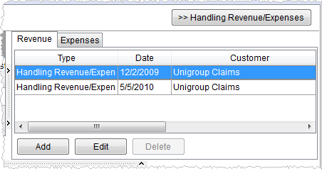 Use the Handling Revenue/Expenses section in Claims to record amounts received (revenue) or paid (expenses) to cover part or all of a claim. See Claims Process Overview for a definition of specific usage.