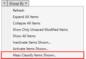 Mass Classify Items Shown You have an option available through the group functions (upper right-hand corner) to set the Classification for all displayed Local Service Type records.