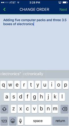 Pressing Change Order opens a prompt for you to enter the changes to be made to the service.