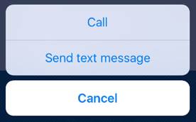 Tap on the email address evokes a new email message from your device. Tap on the phone number provides call or text options.