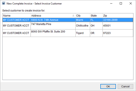 Figure 11: Select Invoice Customer dialog