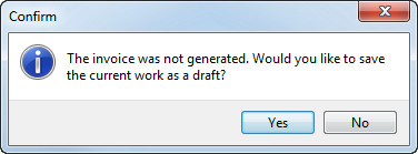 If you attempt to close without generating an invoice, you are prompted to save a draft of the invoice.
