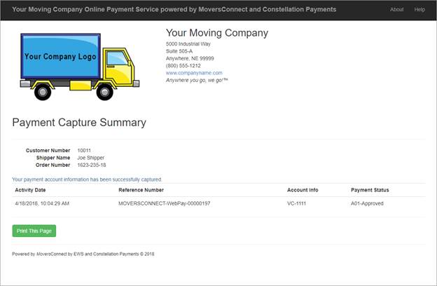 Once a payment capture is successful through the Online Payment site, then this summary page displays. It provides information on whether the payment capture was successful or not along with an option to print the information.