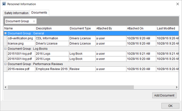 You can add and view documents for personnel through the Documents (Personnel) tab within the Personnel Information screen.