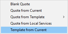 Additionally, you can save a quote to a template to reference to create new quotes by choosing the Template from Current option. Refer to the Quote Template section (above) for more information.