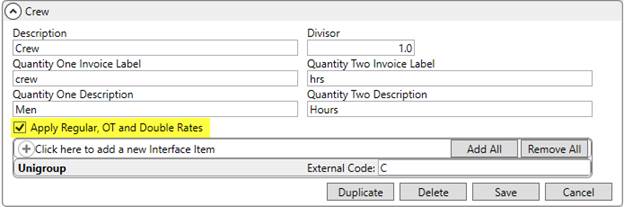 In the example below (Figure 11), selecting the Overtime Rate option pulled in the OT Rate of $217.50 from the Rate Plan.
