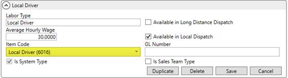 2. Set Item Code on Labor Type records (Labor Type Setup)