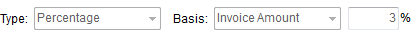 The amount pulled as the basis will appear adjacent to this field. Further, the computation of the basis will display as an English description in the selector bar, e.g. “1% of Invoice Amount ($5,000).” | |