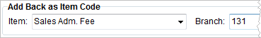 Add back (Alt+B) Opens the Add Back as Item Code section allowing a user to set the Item Code and Branch and AR Branch for the add-back.