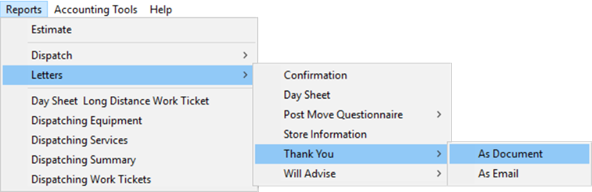 If your company utilizes the Forms Designer system along with the MoversSuite Email Service, then two additional options appear. They include As Document, which opens the letter within a Forms Designer window, and As Email, which opens the letter inside the body of a new MoversSuite Email message.