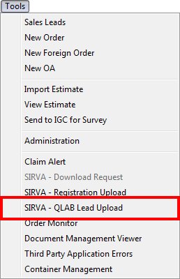 Upload MoversSuite leads into SIRVA QLAB through the SIRVA – QLAB Lead Upload option available within the Tools Menu for qualified orders.