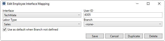 The User ID within the Add Employee Interface Mapping must match the Salesperson ID in TechMate.