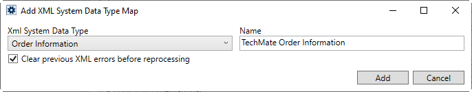 Figure 3: Add XML System Data Type Map dialog