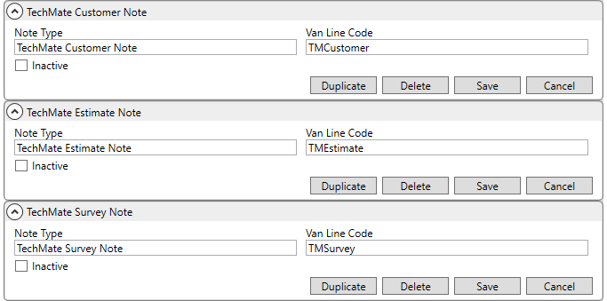There are three different types of notes that are documented for the TechMate Integration. You will need to define each type as a separate Note Type Setup record within MoversSuite.