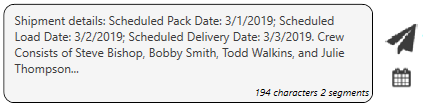 Each message is considered 160 characters for billing purposes. If a message exceeds 160 characters, then a second message is recorded. Each 160-character block is considered a segment. So, a message with 400 characters in it would be considered three segments, i.e. you would be billed for three messages. The character count and segment count display at the bottom of each new message to assist users in managing the data entered.