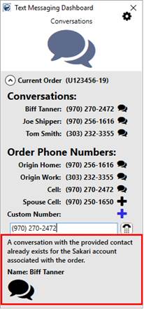 •Each contact phone number is a single conversation with your organization. Multiple users can participate in the conversation and the conversation can be associated to more than one order.