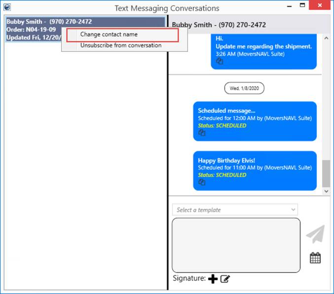 •An existing contact name can be changed from the Text Messaging Conversations window through the Change Contact Name option.
