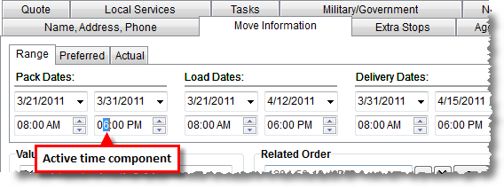 minutes, and time of day. Users can select each component distinctively