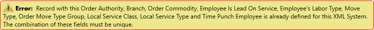 Usually, this error appears when using the same Employee Labor Type for a Time Punch Employee. Remember XML System Payroll Account map needs to have at least one field that is different to be considered unique and therefore be able to save the map.