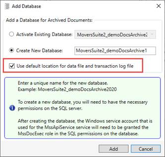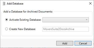 After providing a valid name, press ‘Add’ and the newly created database will be added to the list of Active Databases for Archived Documents.
