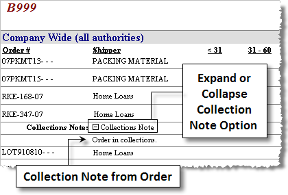 These notes tie directly to order record and must of Note Type “Collections” to display on report. Refer to the administrative setup area within the Note Type Setup.