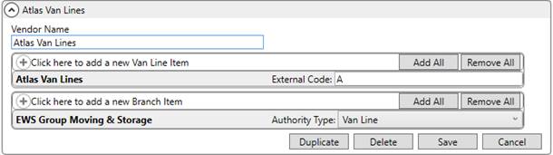 Van Line Setup