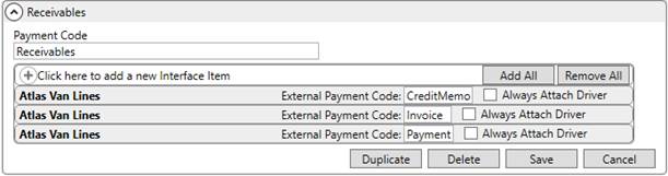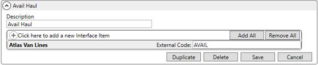 Establish an interface for the Atlas Van Lines within XML Interface Setup. Link this record to the established Van Line Item for Atlas and assign an External Code of A.