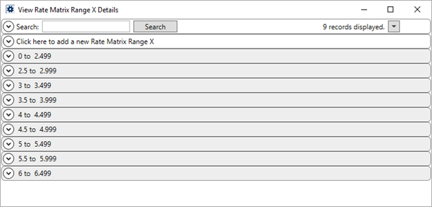 Figure 19: View Rate Matrix Range X Details screen