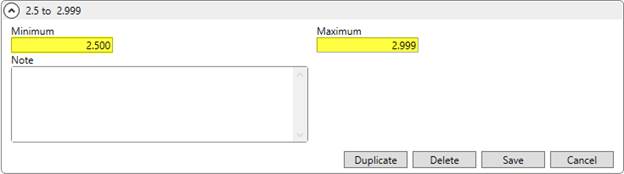 Once the Rate Matrix is established, click on View Range Y to open the View Rate Matrix Range Y Details screen to establish a single range of 0 to 9999 for the Minimum and Maximum values.