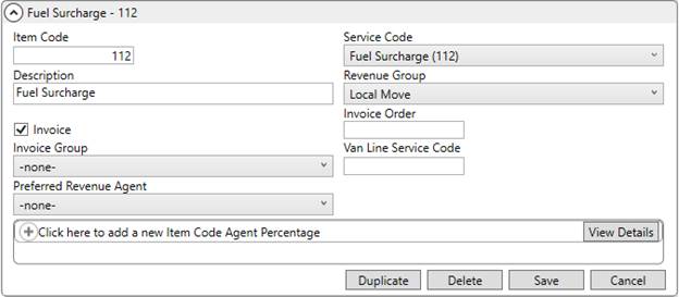 If a new Item Code is needed to support fuel surcharges, then establish one through Item Code Setup.