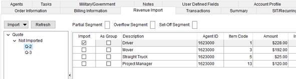 Refer to the following topics for more information on importing revenue from a quote: