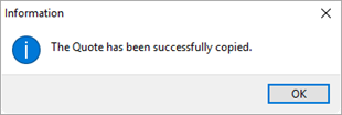 Quote from Current (Alt+C+C) This option is available when a quote exists for the order and is selected within the Quote selector. This option creates a new quote containing all the details and groupings of the copied quote. Once a quote is copied, a confirmation dialog appears.